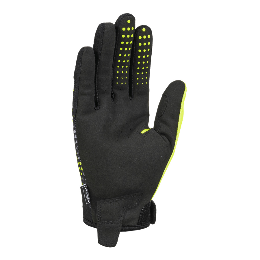 An extremely lightweight glove designed for off-road riding. Constructed from breathable fabrics, with laser-cut ventilation at palm. Featuring raised rubber design details, silicone grip print to fingers, and reinforced thumb overlays for improved durability. This product is not intended to offer protection against injury and is not considered to be ‘personal protective equipment’ as defined in or within the scope of the Regulation (EU) 2016/425 regarding Personal Protective Equipment.