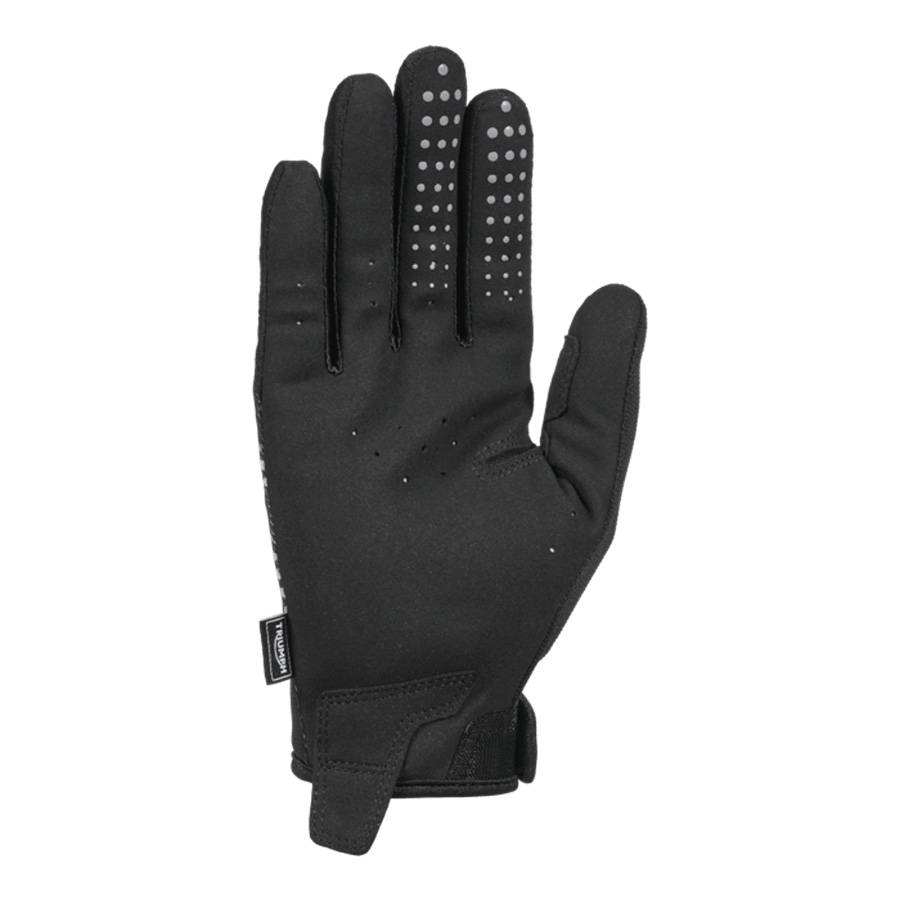 An extremely lightweight glove designed for off-road riding. Constructed from breathable fabrics, with laser-cut ventilation at palm. Featuring raised rubber design details, silicone grip print to fingers, and reinforced thumb overlays for improved durability. This product is not intended to offer protection against injury and is not considered to be ‘personal protective equipment’ as defined in or within the scope of the Regulation (EU) 2016/425 regarding Personal Protective Equipment.